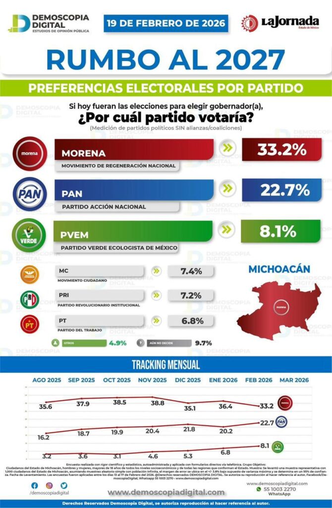 Morelia, Michoacán a 20 de febrero de 2026.- El Partido Verde Ecologista de México (PVEM) en Michoacán se mantiene firme...