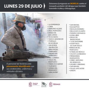 * Mañana se estará trabajando en 39 colonias El día de mañana la Secretaría de Salud de Michoacán (SSM), llevará...
