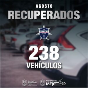 Un total de 238 vehículos fueron recuperados durante el mes de agosto, a través de los sistemas operativos y el...
