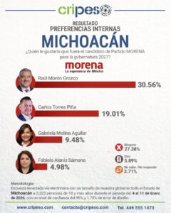 De acuerdo con los resultados más recientes de la casa encuestadora Cripeso, el senador Raúl Morón Orozco se ha posicionado...