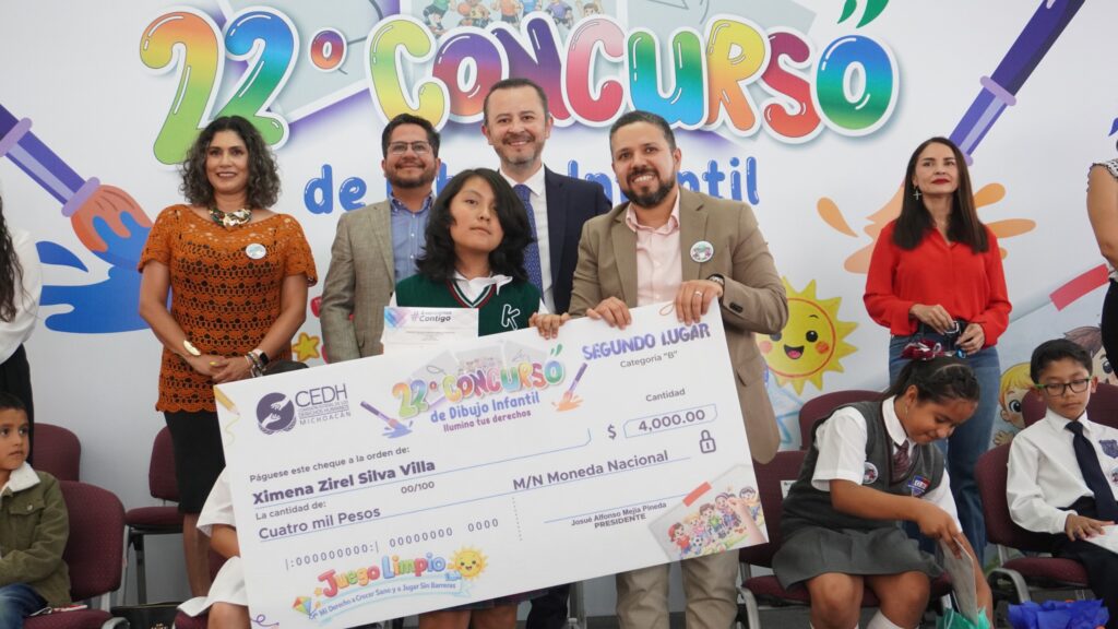 Al presidir la ceremonia de premiación del Concurso de Dibujo Infantil “Ilumina tus derechos”, el presidente de la Comisión Estatal de los Derechos Humanos de Michoacán, Josué Mejía, dijo que este certamen se ha convertido en la más grande consulta infantil de la Entidad, a lo largo de sus 22 años de existencia, y que es el escenario idóneo para que niñas, niños y adolescentes (NNA) expresan sus miedos, pero también la esperanza de vivir en un mundo de paz.