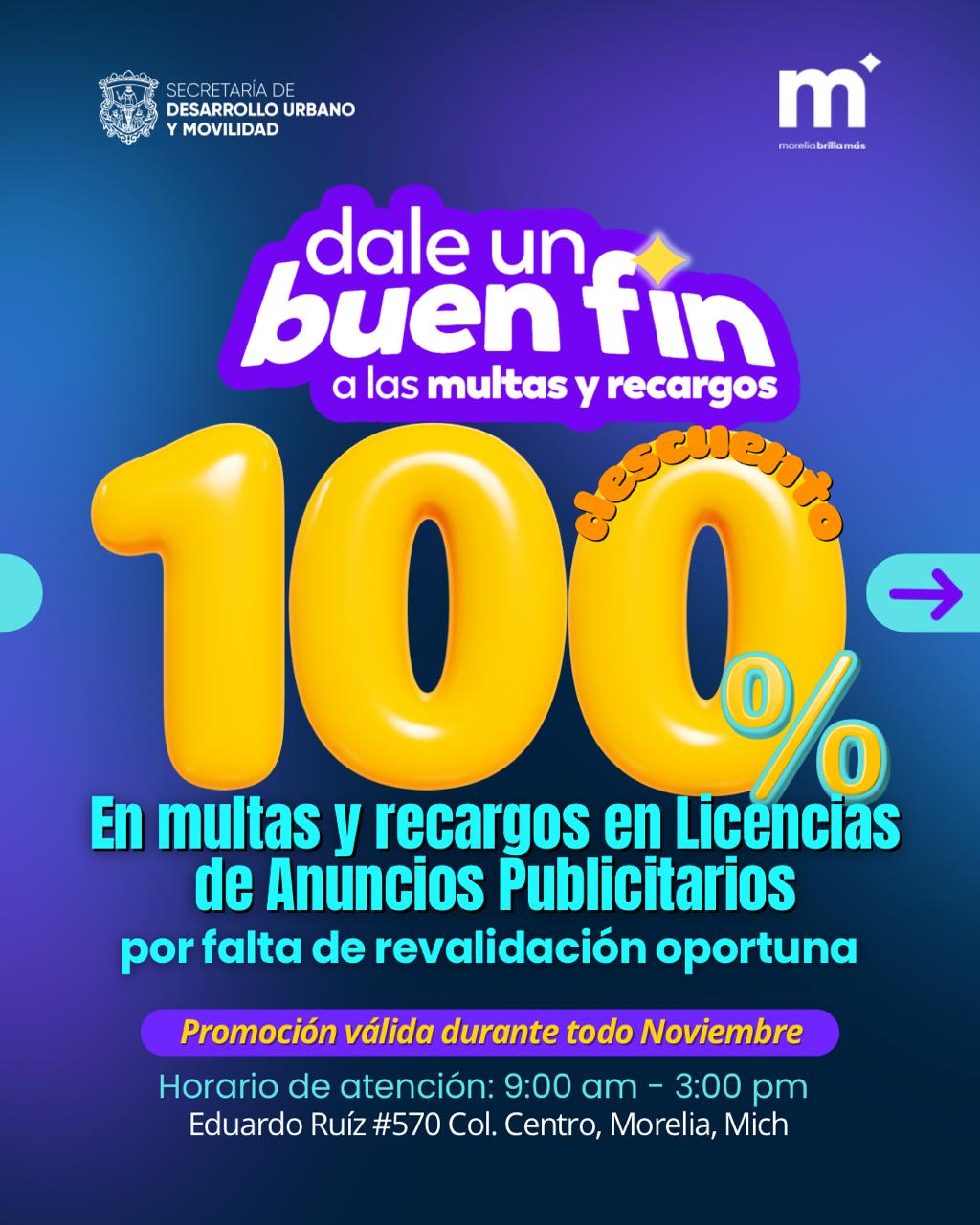 Con el objetivo de apoyar la economía de las y los morelianos y fomentar la regularización urbana, el Gobierno de Morelia, a través de la Secretaría de Desarrollo Urbano y Movilidad (SEDUM), anuncia atractivos descuentos en infracciones y recargos de licencias de Orden Urbano durante el Buen Fin 2025.