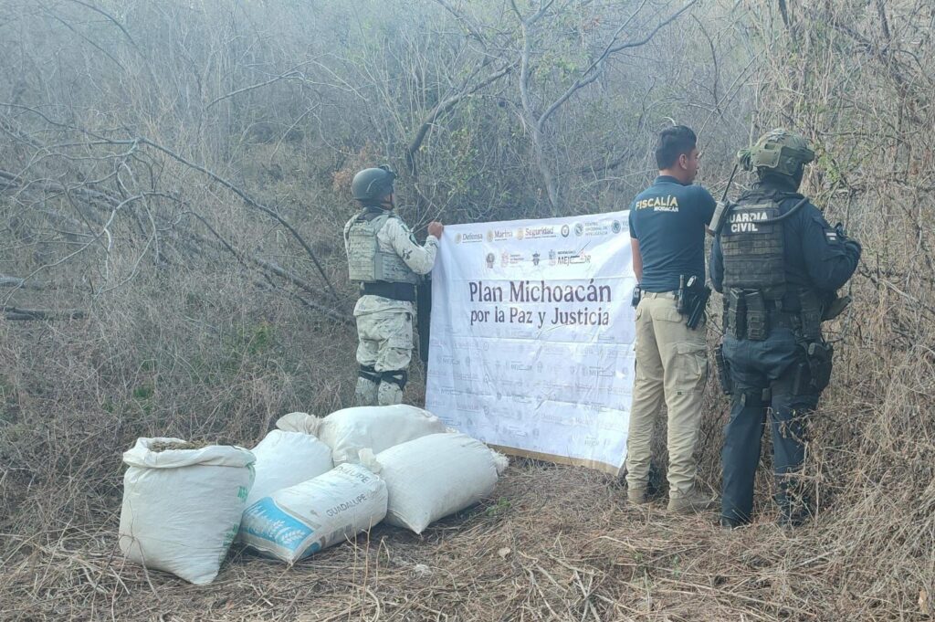La acción se registró sobre una brecha ubicada en las inmediaciones del tramo carretero que conduce al crucero Eréndira en dicho municipio, donde personal de la Guardia Civil, la Guardia Nacional y la FGE realizaban recorridos de prevención y disuasión del delito, localizando cinco costales en aparente estado de abandono.