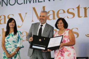 Frente a casi 2 mil maestras, maestros y trabajadores de la educación reunidos en la entrega de medallas por años...