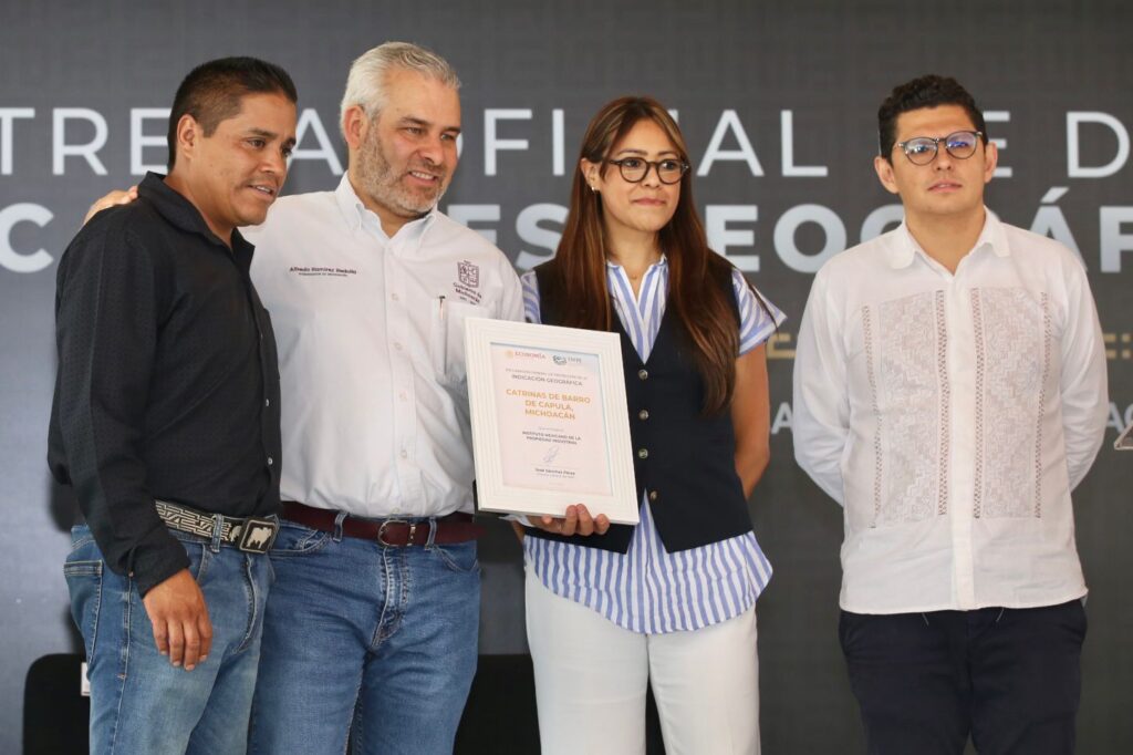 La catrina de Capula y el cobre martillado de Santa Clara del Cobre se convierten en piezas con reconocimiento internacional, destacó el gobernador Alfredo Ramírez Bedolla, al recibir ambas artesanías la declaratoria de Indicaciones Geográficas Protegidas, por parte del Instituto Mexicano de la Propiedad Industrial (IMPI).