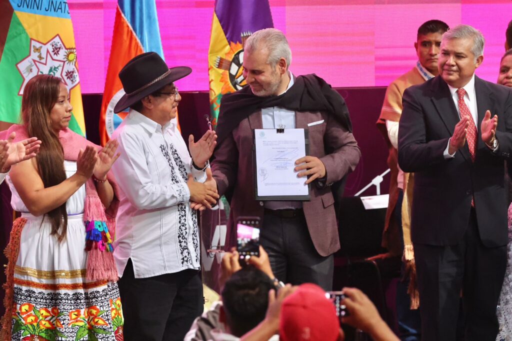 El gobernador Alfredo Ramírez Bedolla firmó la iniciativa de reforma constitucional en materia indígena, la cual contempla la figura del Gobierno Comunal y reconoce el presupuesto directo, además de que las comunidades podrán acceder a los programas de infraestructura pública municipal, educativa y seguridad, mimos que serán administrados de manera directa por los autogobiernos.