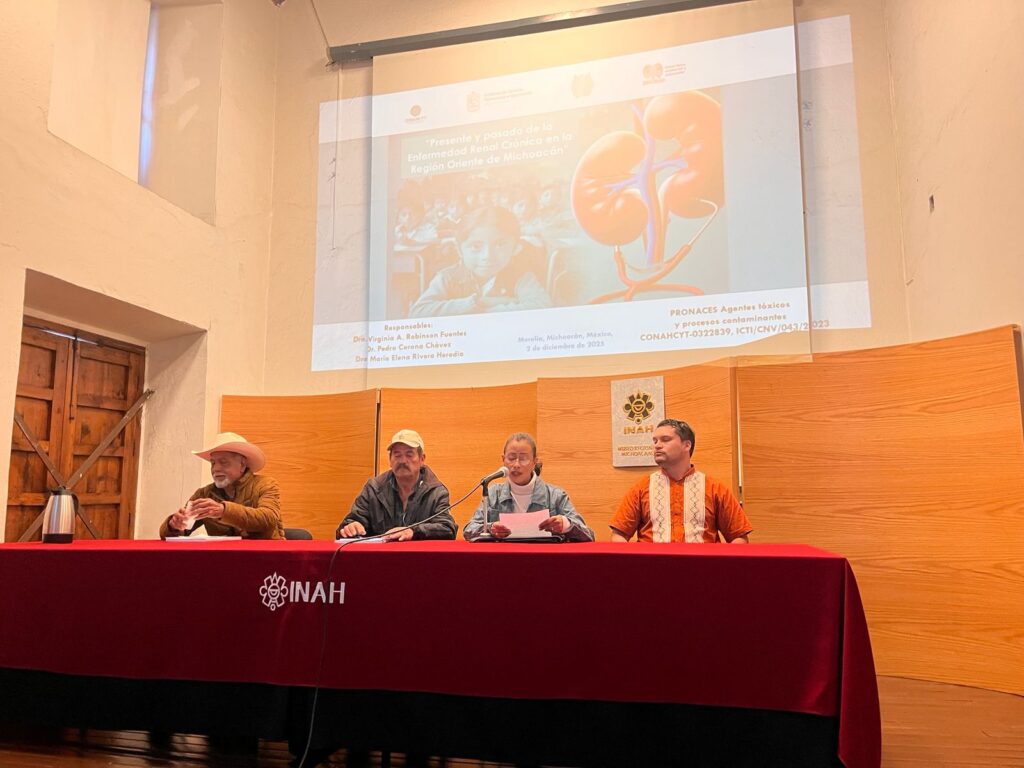 La investigación, titulada “Enfermedad renal crónica en la región oriente de Michoacán y su relación con las condiciones naturales, impacto ambiental y psicosocial”, fue posible gracias al apoyo estatal del Instituto de Ciencia, Tecnología e Innovación (ICTI) y al respaldo federal del Consejo Nacional de Ciencia, Humanidades y Tecnología (CONAHCYT). Este proyecto se llevó a cabo con un enfoque interdisciplinario, abordando la salud desde las perspectivas física, ambiental y psicosocial. Durante el evento público, “Pasado y presente de la ERC en oriente de Michoacán”, que sirvió como ejercicio de rendición de cuentas, se contó con la presencia de un presidium y presentaciones de áreas académicas especializadas. De manera fundamental, el evento incluyó la participación de representantes de comunidades del oriente de Michoacán, junto con una participación abierta al público en general.