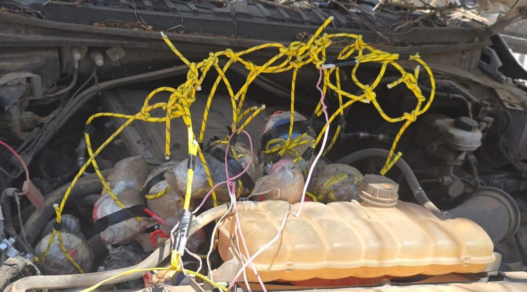 A su vez, se encontró un aproximado de 18 kilos de explosivos, así como seis kilos de pólvora que presuntamente serían utilizados para la elaboración de explosivos improvisados, los cuales fueron desactivados por personal del Agrupamiento Especializado de Artefactos Explosivos y Materiales Peligrosos de la Guardia Civil y equipo especializado del Ejército Mexicano.
