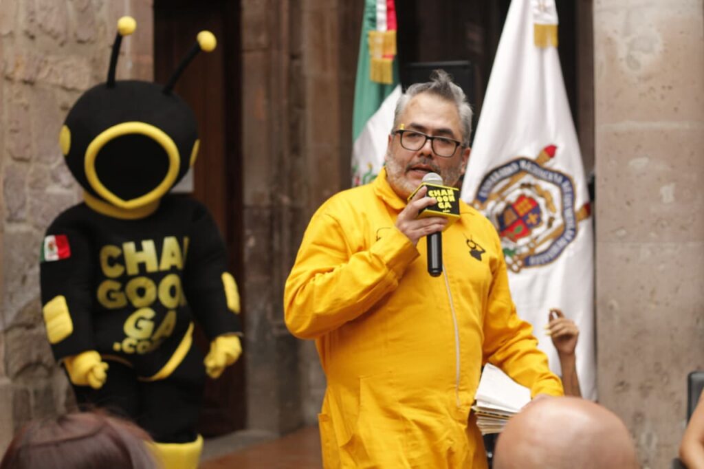 Indicó que la UMSNH es el semillero de la democracia, de las nuevas generaciones y de los valores. Durante su participación, el fundador de Changoonga tuvo un diálogo abierto con las y los estudiantes, a quienes manifestó que en esta época se ocupan héroes, “no es difícil ser un héroe siendo periodista, pueden ayudar, hacer la diferencia, de alguna señora que requiere despensas, a una familia que se le quemó su casa y no hay quien la ayude, a una madre buscadora”.