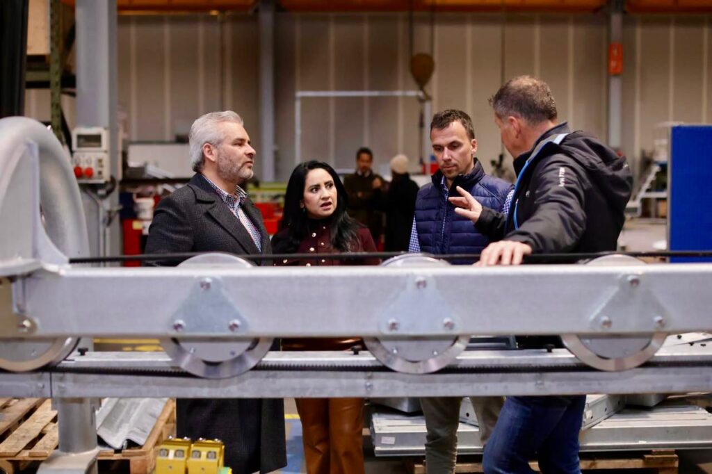 Vipiteno, Italia, 27 de octubre de 2024.- Tras visitar la planta de Leitner, empresa italiana que construirá el teleférico de Morelia, se acordó entre el gobernador Alfredo Ramírez Bedolla y el presidente de la empresa, Anton Seeber, que en abril del próximo año llegarán a la capital michoacana el sistema electromecánico de las primeras dos estaciones.