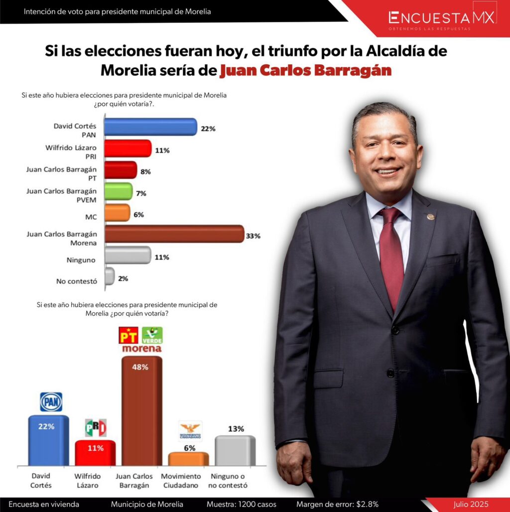 Encuestas confirman: Juan Carlos Barragán lidera la carrera por Morelia y arrasa 2 a 1 dentro de Morena