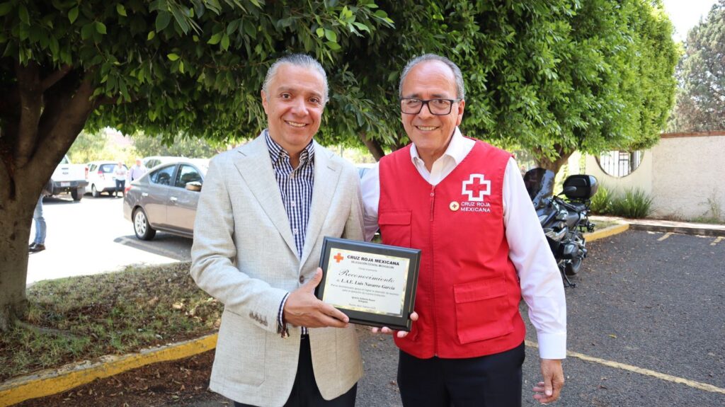 El mandatario, acompañado por el secretario de Finanzas y Administración, Luis Navarro García y el director general del Servicio de Administración Tributaria de Michoacán (Satmich), Salvador Juárez Álvarez, entregó el respectivo cheque al delegado estatal de la Cruz Roja, Ignacio Gallardo Reyes.