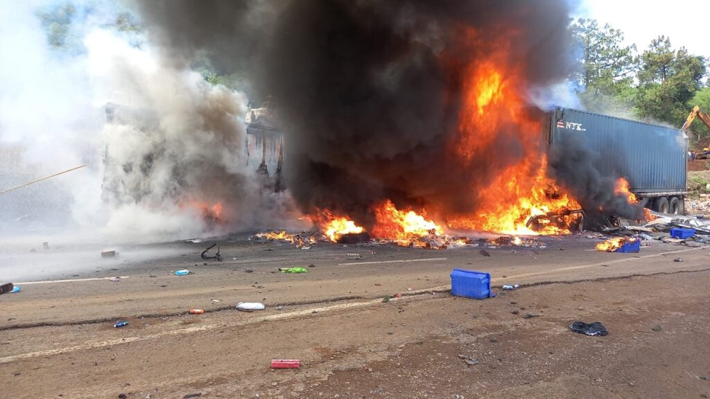 De acuerdo con los primeros informes, en el tramo Pátzcuaro – Uruapan, a la altura de la antigua caseta de cobro de San Ángel, una de las pesadas unidades se quedó sin frenos e impactó contra otros dos camiones y un auto, cerca de las 10:30 horas.
