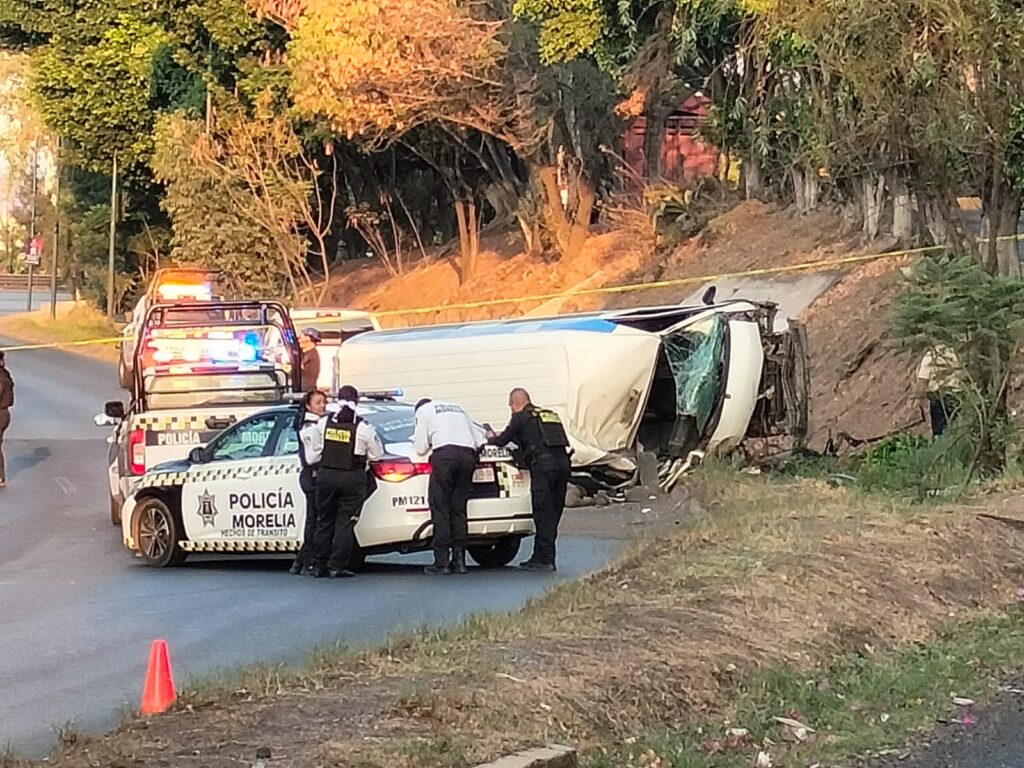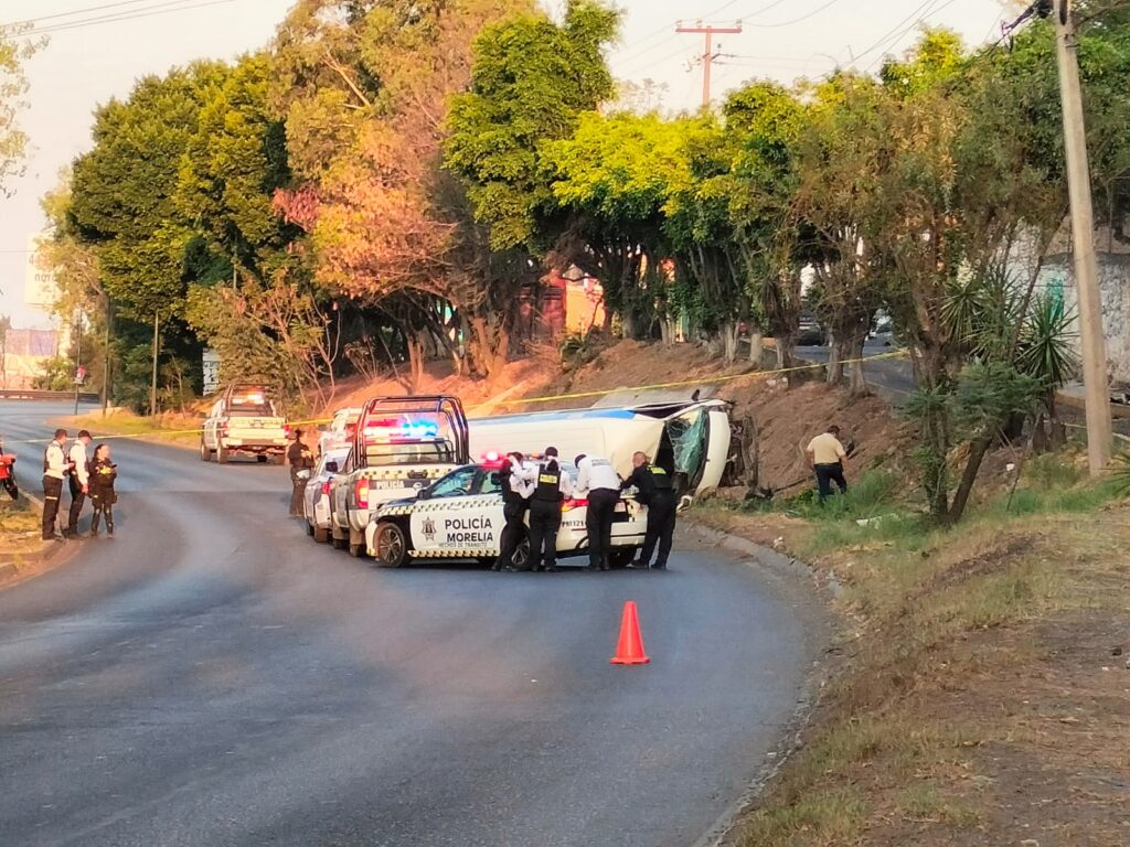 Un hombre falleció tras el choque volcadura de una combi de la Ruta Morada, con número económico 15, esto sobre el Periférico Paseo de la República, al norte de Morelia, informaron autoridades policiales, las cuales agregaron que posiblemente el ahora finado sea el chofer del citado automotor.