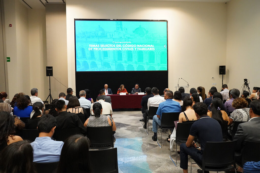 Juezas y jueces en materia civil y familiar del Poder Judicial de Michoacán, pertenecientes al distrito judicial de Uruapan, encabezaron un conversatorio al que asistieron más de 300 personas y en el que se analizaron temas selectos incluidos en el nuevo Código Nacional de Procedimientos Civiles y Familiares (CNPCYF).