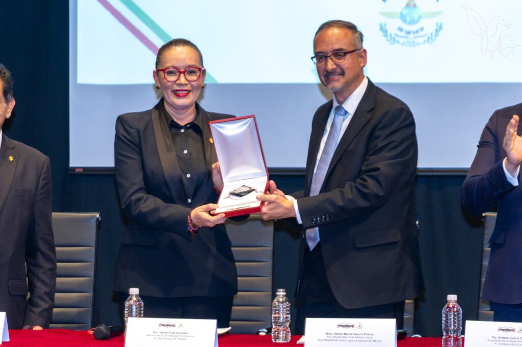 Con la presencia de representantes del Poder Legislativo y Judicial, así como de integrantes de las Grandes Logias de Michoacán, la rectora agradeció este reconocimiento, tras resaltar el trabajo en equipo que se ha podido generar con la Gran Logia Lautariana de México.