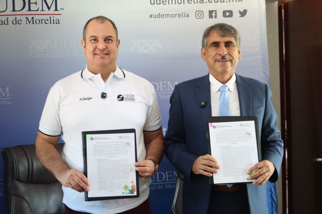 La Comisión Estatal de los Derechos Humanos de Michoacán se dedica a construir paz, afirmó el ombudsperson, Marco Antonio Tinoco Álvarez al firmar convenio de colaboración con el rector de la Universidad de Morelia (UDEM), Pedro Chávez Villa, objetivo en el cual coinciden ambas instituciones.
