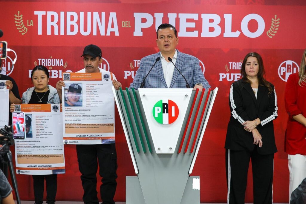 Acompañado de los padres de Carlos Eduardo Becerra Ortiz y Javier Hurueta García, el líder priista recordó que los vehículos registrados en una videograbación obtenida del momento de la desaparición, son los que siguieron al equipo del PRI en 2024.