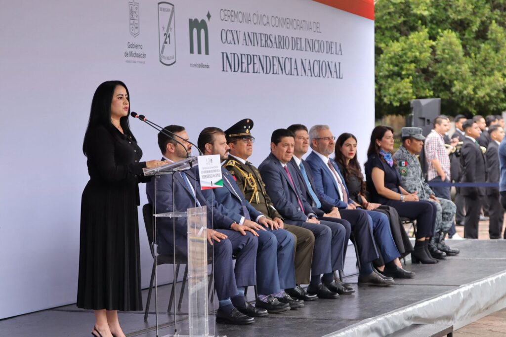 Esto, al fungir como oradora oficial en un evento conmemorativo por el 215 aniversario del inicio de la Independencia de México, donde la funcionaria estatal subrayó que, “así como hace 215 años, las michoacanas y los michoacanos estamos de pie, listos para aportar a la gran transformación de la República y caminar con ella hacia un futuro de justicia, dignidad y esperanza al defender nuestra soberanía energética, nuestros recursos naturales, nuestro legado cultural y todo aquello que representa una oportunidad de desarrollo y prosperidad, así como nuestra identidad”.