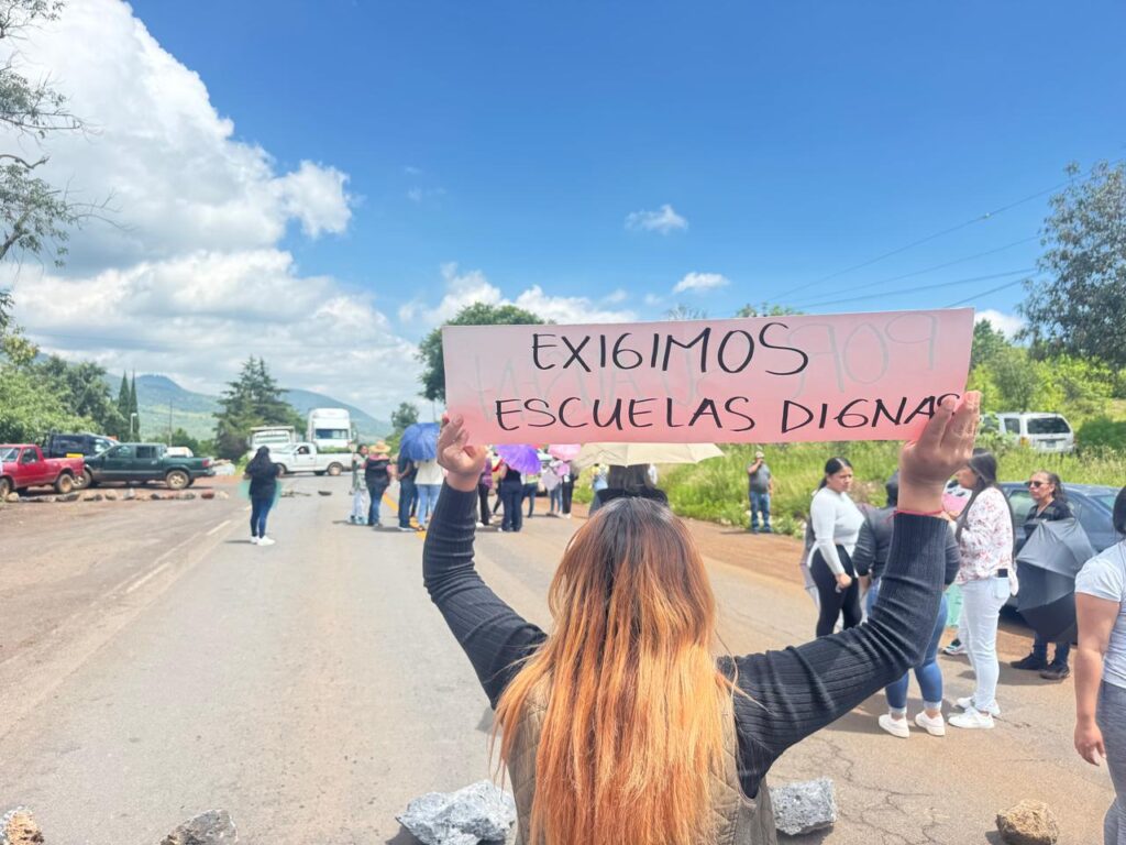Morelia, Mich.- Viernes 05 de septiembre de 2025.- Un grupo de personas bloqueó la carretera Morelia-Quiroga, a la altura de la población de Iratzio. Según fuentes allegadas al tema, los manifestantes exigen mantenimiento y clases en sus escuelas.