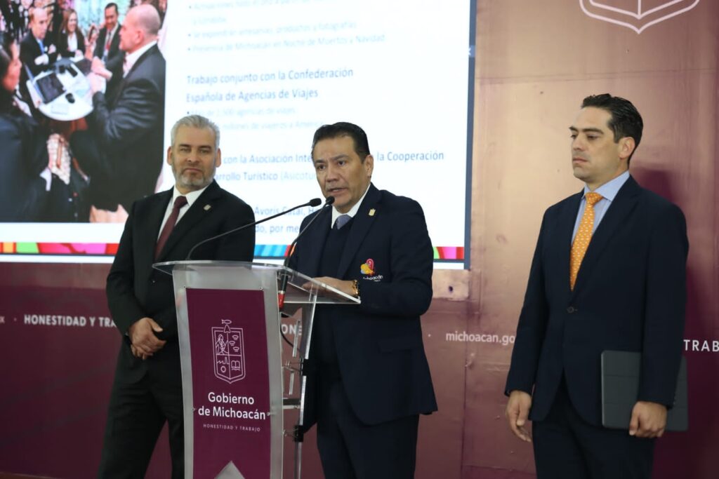 Roberto Monroy García, secretario de Turismo de Michoacán explicó junto al gobernador Alfredo Ramírez Bedolla, los logros alcanzados en beneficio del estado, y los cuales se verán reflejados próximamente con la visita de turistas y la derrama económica que estos dejen entre la población dedicada al sector.