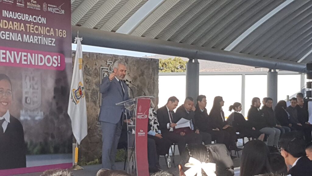 El jefe del Ejecutivo estatal acudió a la inauguración de la Secundaria Técnica número 168 “Ifigenia Martínez”, ubicada en el fraccionamiento Villas del Pedregal, en la capital michoacana.
