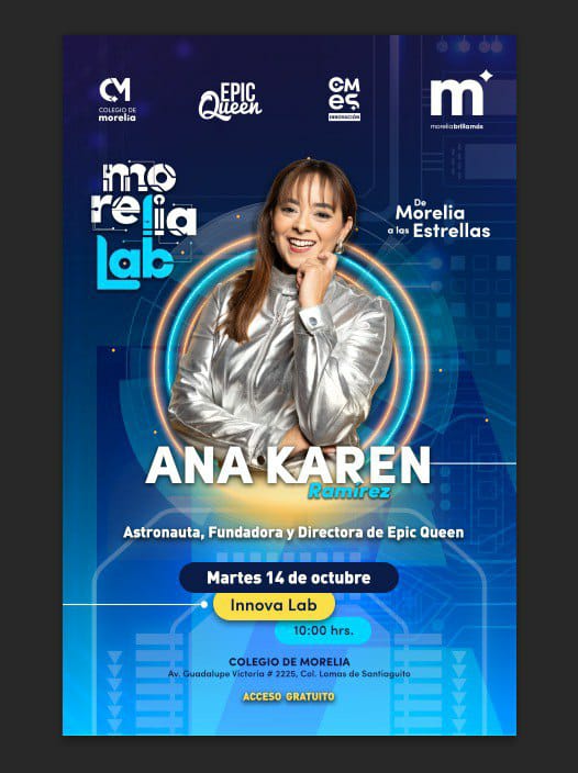 El director del Colegio de Morelia, Iván Fernando Barrales Alcántara, detalló que Ana Karen Ramírez abrirá el evento con la conferencia “De Morelia a las Estrellas: Cómo una mexicana de Morelia está modelando el futuro con tecnología”. Además de que presentará el cortometraje titulado “This is Mission”.