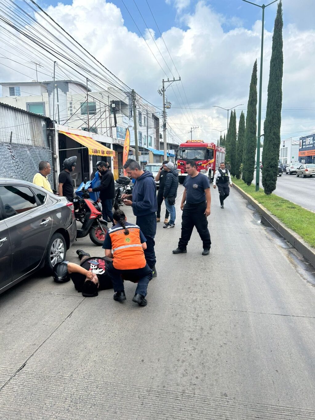 En el sitio se presentaron unos paramédicos de la Coordinación Estatal de Protección Civil Michoacán (CEPCM), quienes atendieron al motorista lastimado.