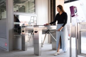 Gladyz Butanda entrega tarjetas del teleférico en Cecytem Uruapan