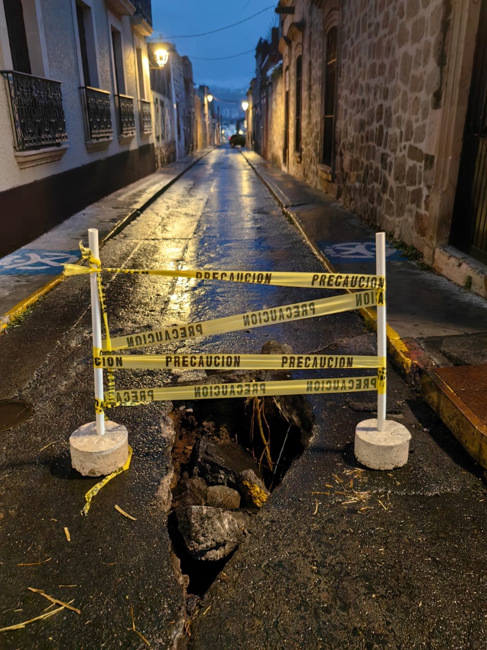 Ayer domingo por la tarde, personal de guardia del Organismo Operador de Agua Potable, Alcantarillado y Saneamiento de Morelia (OOAPAS) detectó un hundimiento en la esquina de Sánchez de Tagle y Bartolomé de las Casas, en la colonia Centro. De inmediato, se resguardó la zona para proteger a la ciudadanía y, a primera hora de este lunes se iniciaron los trabajos de reparación.