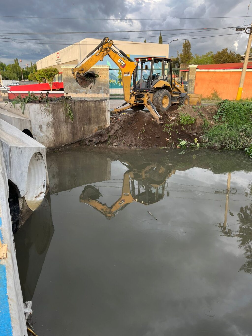 Con maquinaria, se retiraron 7 toneladas de material que se encontraba obstruyendo el paso de agua. La basura hizo presencia otra vez: llantas, bolsas plásticas y botellas PET se acumularon junto con las ramas arrastradas por la corriente del dren.