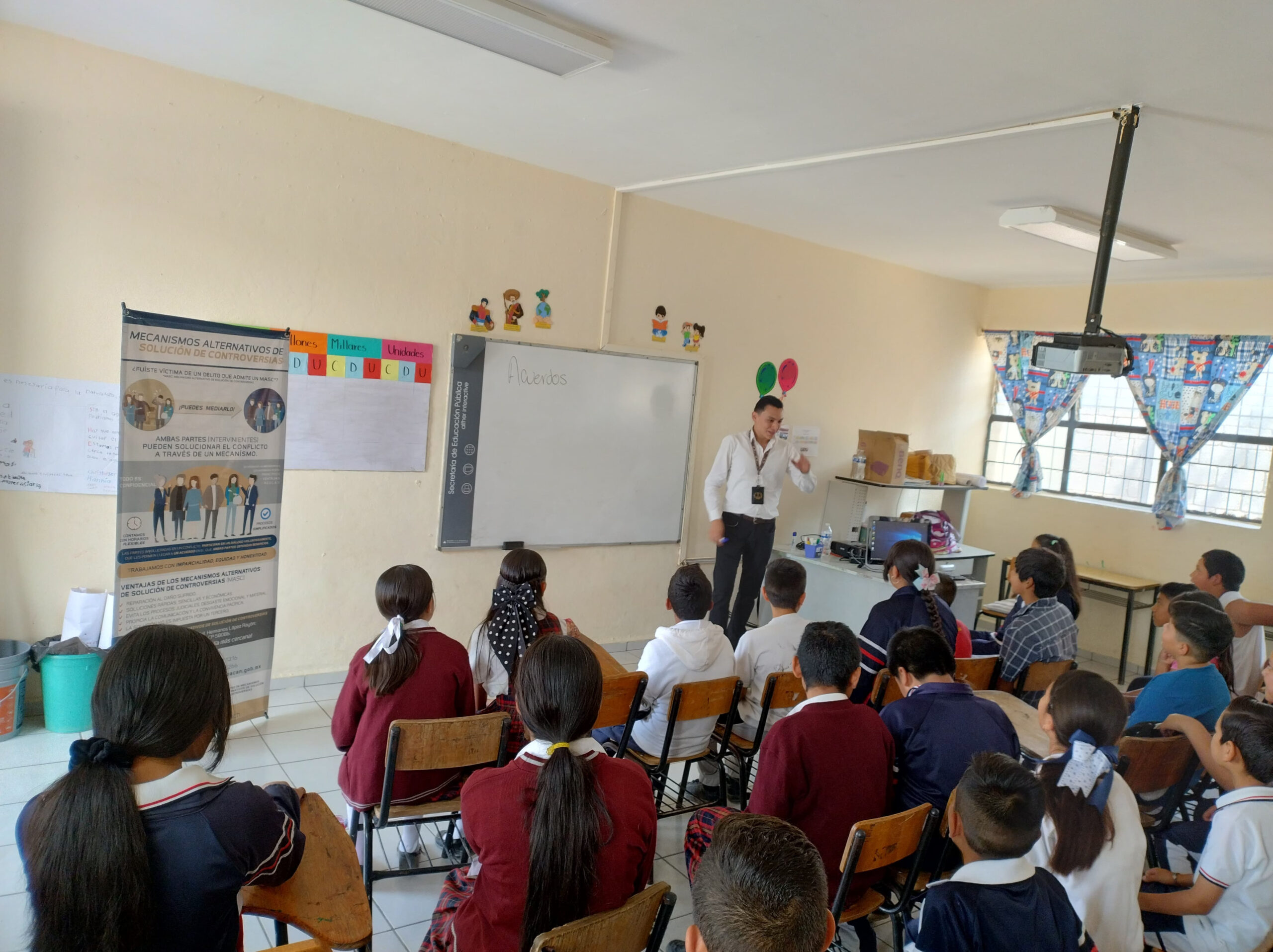 La Fiscalía General del Estado de Michoacán (FGE), a través del Centro de Mecanismos Alternativos de Solución de Controversias (CMASC) promovió valores cívicos y éticos durante el taller dirigido a estudiantes de la Escuela Primaria Rural Federal «Vicente Guerrero» de Morelia.