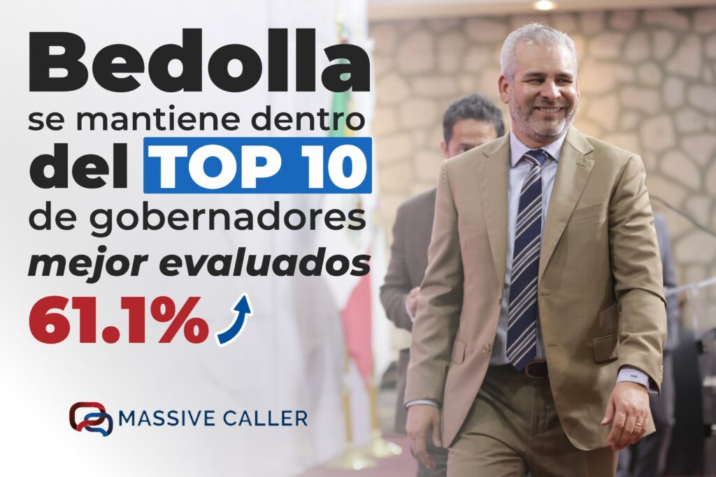 La empresa encuestadora Massive Caller informó que el gobernador Alfredo Ramírez Bedolla continúa en el Top Ten de los gobernadores del país mejor evaluados.