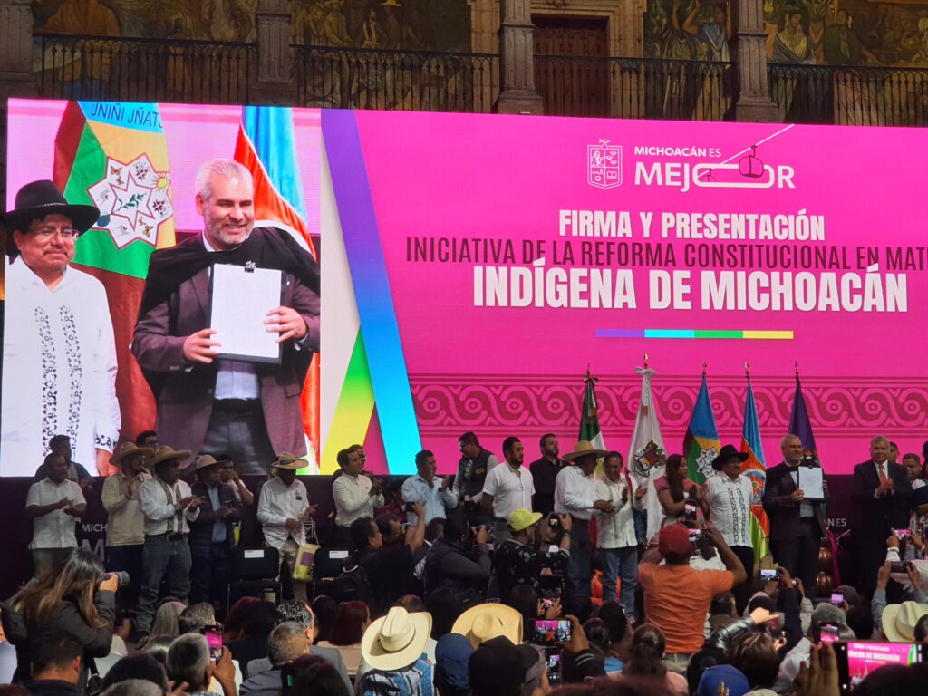 Considerado un acto histórico para Michoacán, el gobernador Alfredo Ramírez Bedolla presidió la firma y presentación de la iniciativa de reforma constitucional en materia indígena, como parte de los objetivos del Plan Morelos.