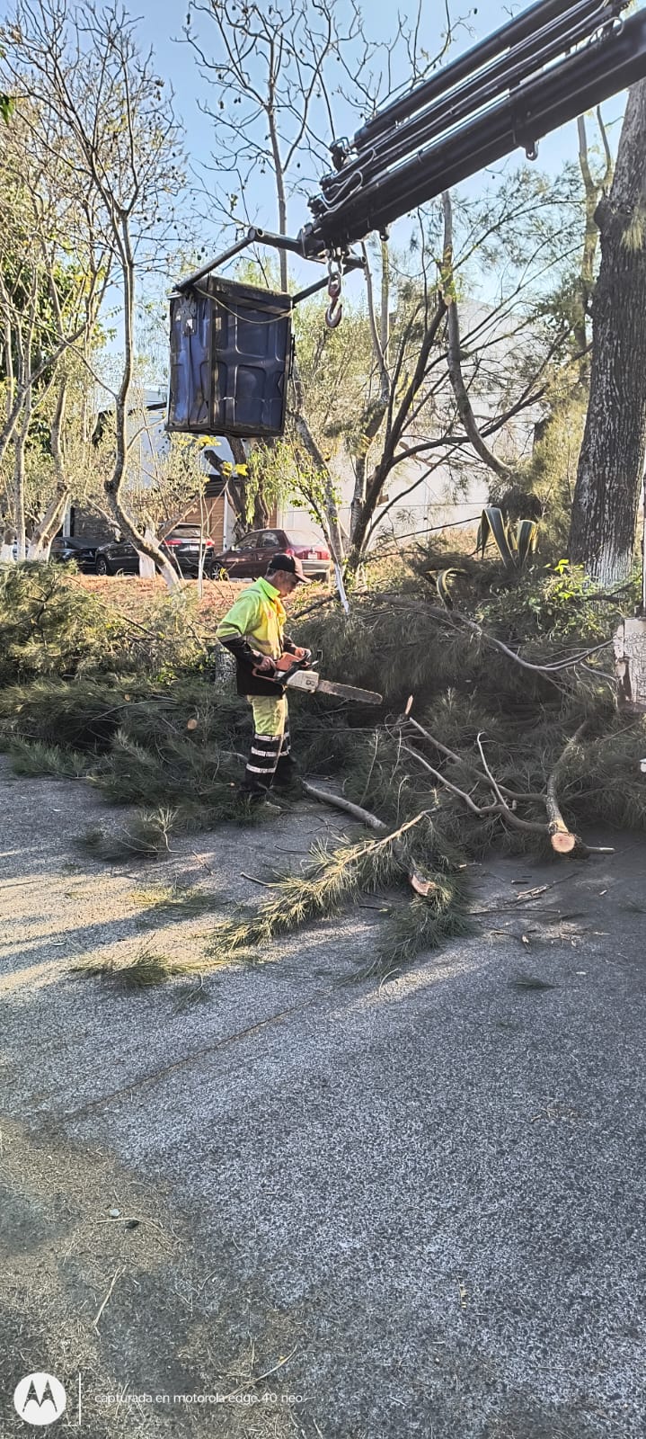 Refuerza Servicios Públicos la seguridad y el entorno urbano con poda de árboles en Calzada La Huerta