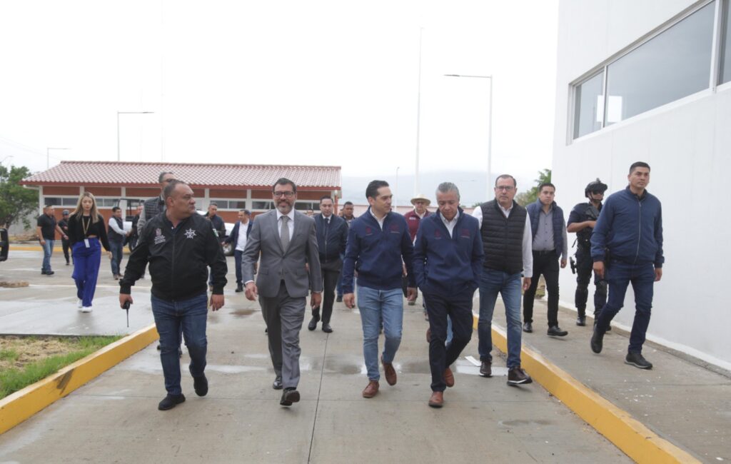 Los titulares de las secretarías de Seguridad Pública (SSP), Comunicaciones y Obras del Gobierno (SCOP), y de Finanzas y Administración (SFA), Juan Carlos Oseguera Cortés, Rogelio Zarazúa Sánchez y Luis Navarro García, respectivamente, recorrieron las instalaciones del complejo que tendrá una capacidad para albergar a más de 400 guardias civiles y 200 elementos administrativos de la corporación.