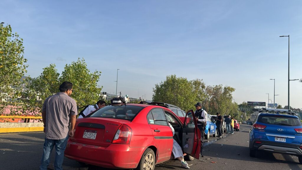 Morelia, Mich.- Jueves 16 de octubre de 2025.- Una carambola vehicular se registró la mañana de este jueves sobre el puente del Libramiento Norponiente de Morelia, justo a la altura de la Terminal de Autobuses de Morelia (TAM), hecho que dejó una persona lesionada y varios daños materiales, informaron autoridades policiales.