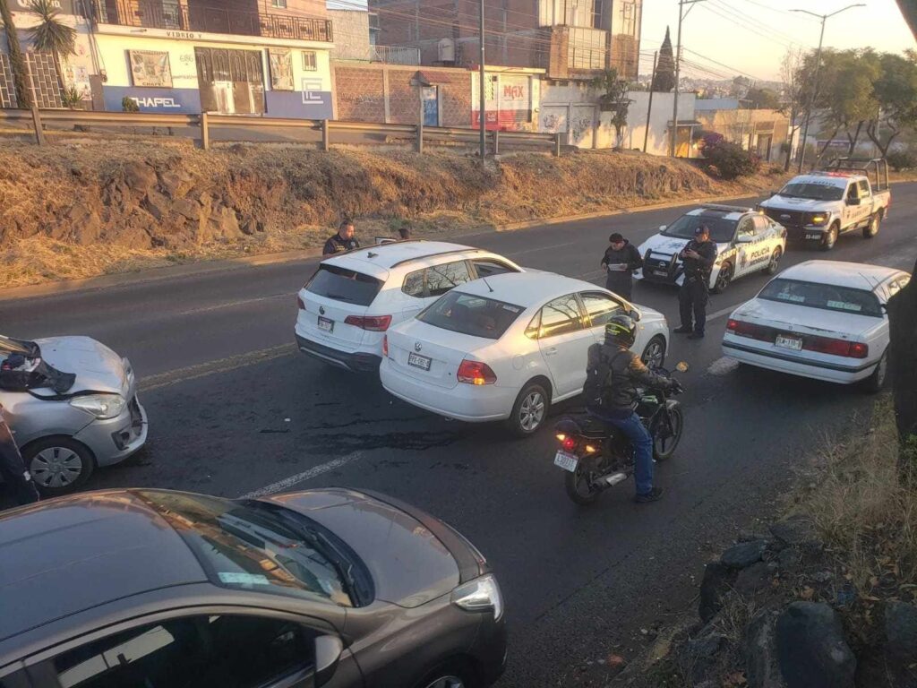 Primeramente, tres automotores protagonizaron una colisión en el sentido de Villas del Pedregal hacia el centro de esta capital, hecho que solo dejó daños materiales y caos vial.