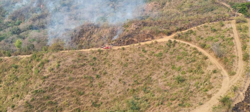 Con las altas temperaturas se dificultan las acciones para sofocar el incendio, debido a fuertes rachas de viento y gran resequedad de la vegetación; sin embargo, se espera que, si no existen cambios bruscos en las condiciones atmosféricas, en el transcurso del día se logre un buen avance en el control del siniestro.