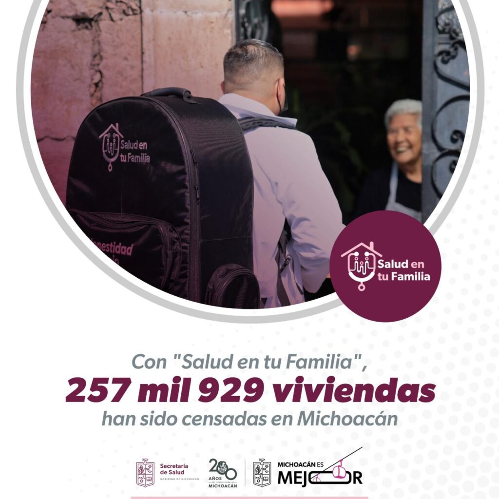 Con el Programa Salud en Tu Familia, los médicos de la Secretaría de Salud de Michoacán (SSM) han visitado más de 257 mil viviendas para llevar consultas, medicinas, aparatos funcionales y estudios de laboratorio a las personas que no pueden trasladarse por sí mismas a una unidad médica.