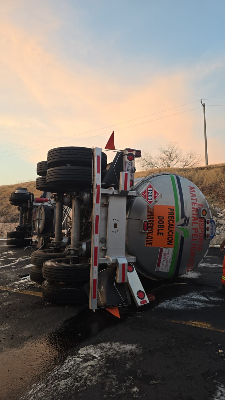 Fue necesario el arribo de 3 grúas para desvolcar el tanque-pipa, de nueva cuenta rociar espuma y limpiar la carpeta asfáltica minuciosamente, para finalmente hacer el retiro de la unidad siniestrada, misma que fue asegurada para que la autoridad competente determine responsabilidades.