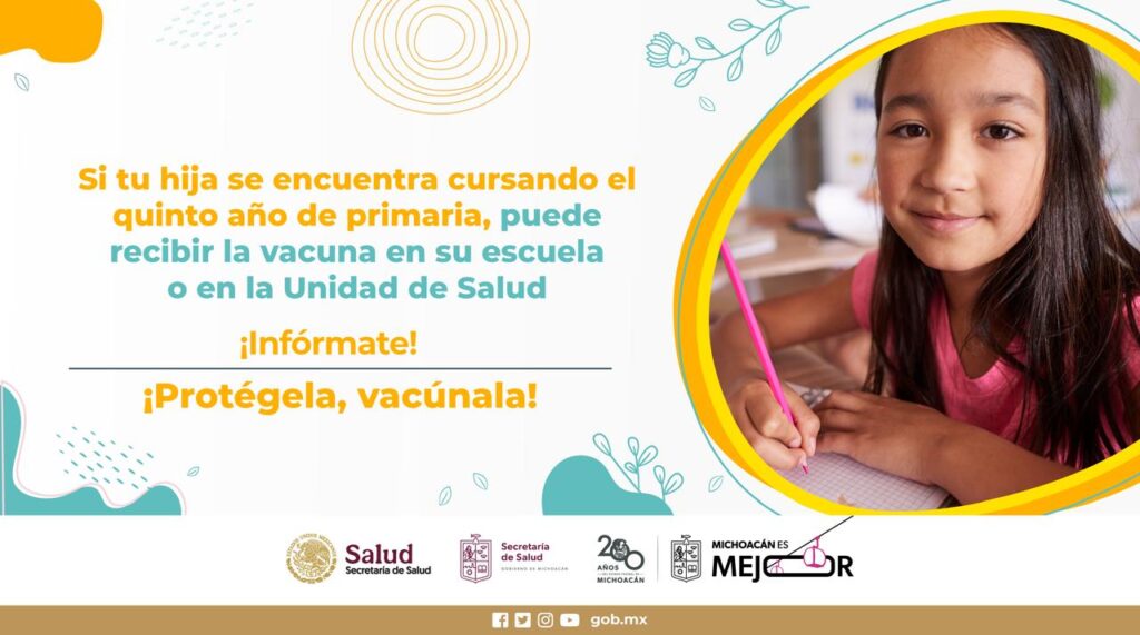 La vacuna consta de una sola dosis y para solicitarla se debe presentar la Clave Única de Registro de Población (CURP) y el consentimiento firmado por madres y padres de familia o tutores, que se puede descargar de la liga https://bit.ly/4g2AKod.