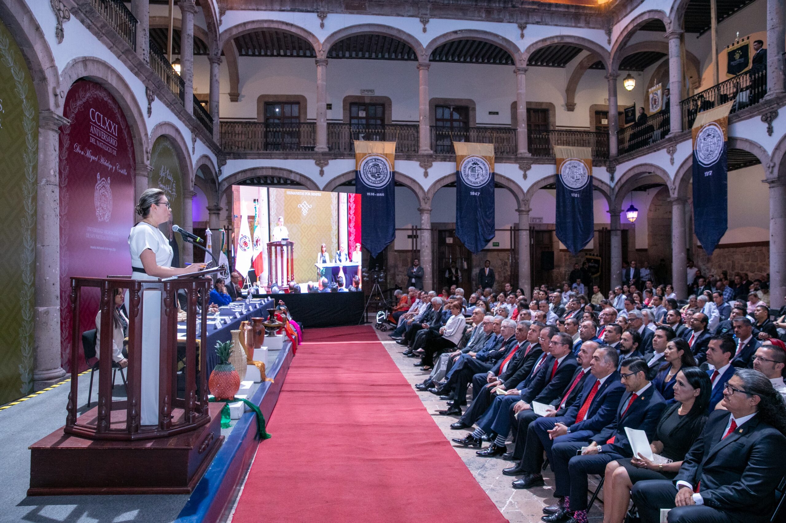 “Hagamos votos para que las nuevas generaciones no dejen romper ese eslabón invisible pero férreo que nos une a todos los nicolaitas en la trayectoria histórica de este viejo Colegio y que guarde celosamente la tradición libertaria que nos legó el rector Miguel Hidalgo y Costilla”, apuntó.