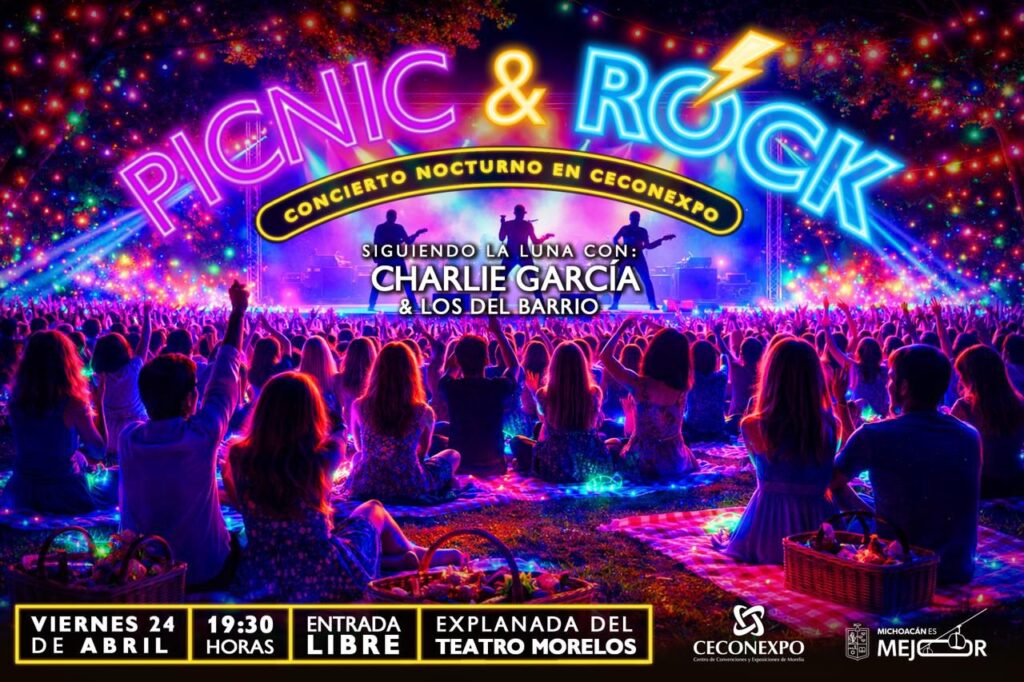 El Centro de Convenciones y Exposiciones de Morelia (Ceconexpo) invita al evento «Picnic & Rock: Siguiendo la Luna», que se realizará el viernes 24 de abril a las 19:30 horas en la explanada del Teatro Morelos, con acceso libre.